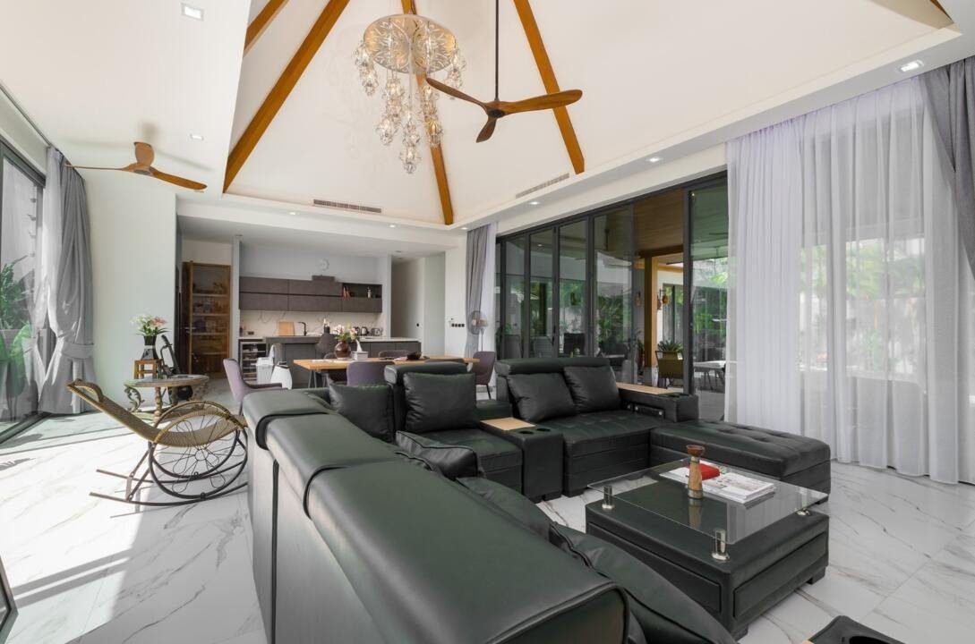 Indulge in the pinnacle of contemporary living with our brand-new, just-completed 4-bedroom villa located in the idyllic Pasak area of Cherngtalay. Set on a sprawling 645 square meters of prime real estate, this residence is a testament to modern design and luxury. The villa seamlessly blends elegance with functionality, providing a tranquil retreat in a quiet and exclusive neighborhood. The sleek architecture of the property is complemented by large windows that frame picturesque views, allowing residents to enjoy the natural beauty of the surroundings.