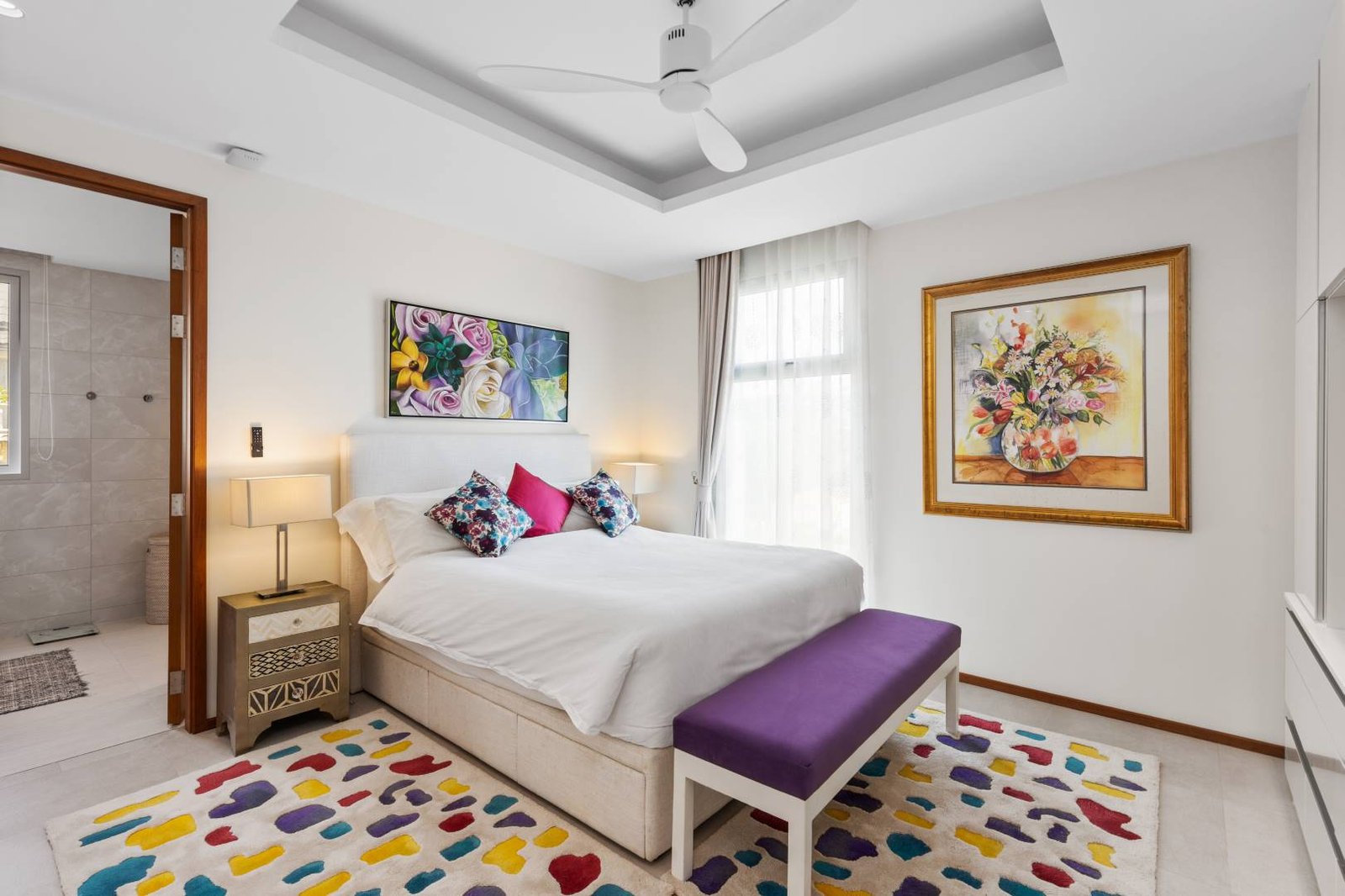 • En-suite bathrooms and luxurious bathtub.