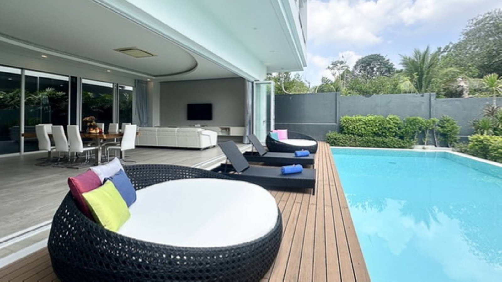 Exclusive opportunity to acquire a luxurious 4-bedroom villa in the heart of Cherng Talay, Phuket. This remarkable property, with its extensive indoor area of 511 sqm and total land size of 542 sqm, presents a lifestyle of unparalleled comfort and privacy with a touch of elegance. The villa boasts an array of premium features including a private pool, lush garden, and a sophisticated Western kitchen, making it a perfect sanctuary for relaxation and entertainment.